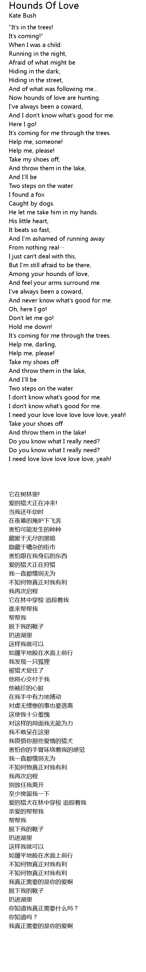 The Futureheads - Hounds Of Love, Artist: The Futureheads Song: Hounds Of Love Album: The Futureheads Lyrics When I was a child, running in the night I was . We Have got 13 images about Hounds Of Love images, photos, pictures, backgrounds, and more. In such page, we additionally have number of images out there. Such as png, jpg, animated gifs, pic art, symbol, blackandwhite, pics, etc. "Kate Bush - Hounds of Love (Live at The BRITs 1986)", Kate Bush performs 'Hounds of Love' live at The BRIT Awards 1986. Uploaded exclusively to celebrate the 40th edition of The . "Eiv\u00f8r - Hounds Of Love", Beta: http://goo.gl/ZSVV1 iTunes: http://bit.ly/8ZECgW...